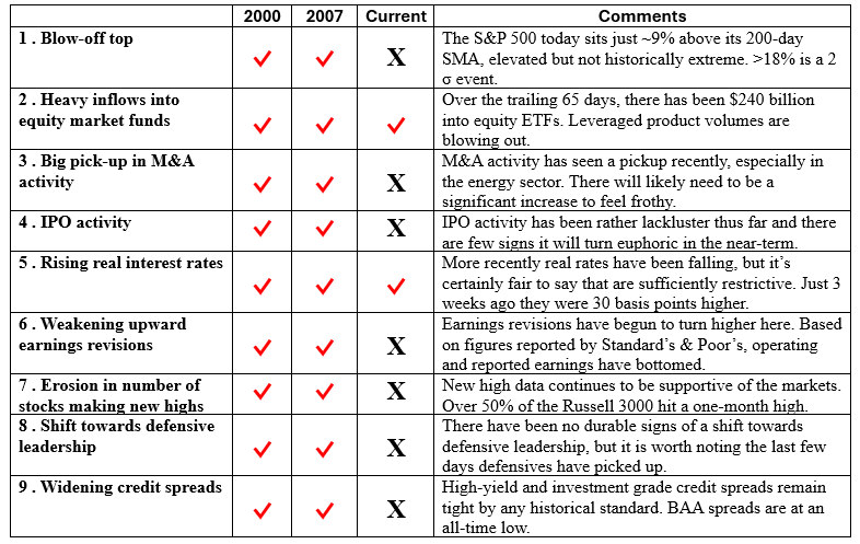 Bull Market Top Checklist [2000 vs. 2007 vs. Today]